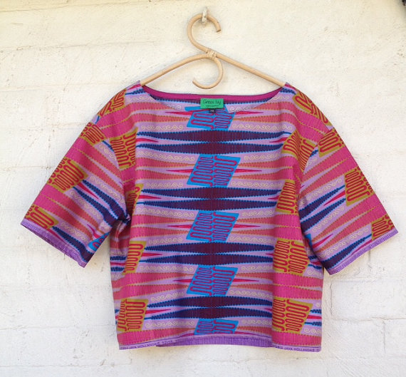 Simple tops make stunning outfits with the right prints and fabrics! This one is an African fabric and would go wonderfully well with a navy skirt.